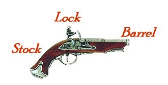 The effective portions of a gun (or more specifically a musket) are the lock (used to hold ready the sparking mechanism), the stock (the portion held), and the barrel (the aiming guide and conveyor for the explosive-driven projectile). Collectively they are the whole weapon, and therefore everything.